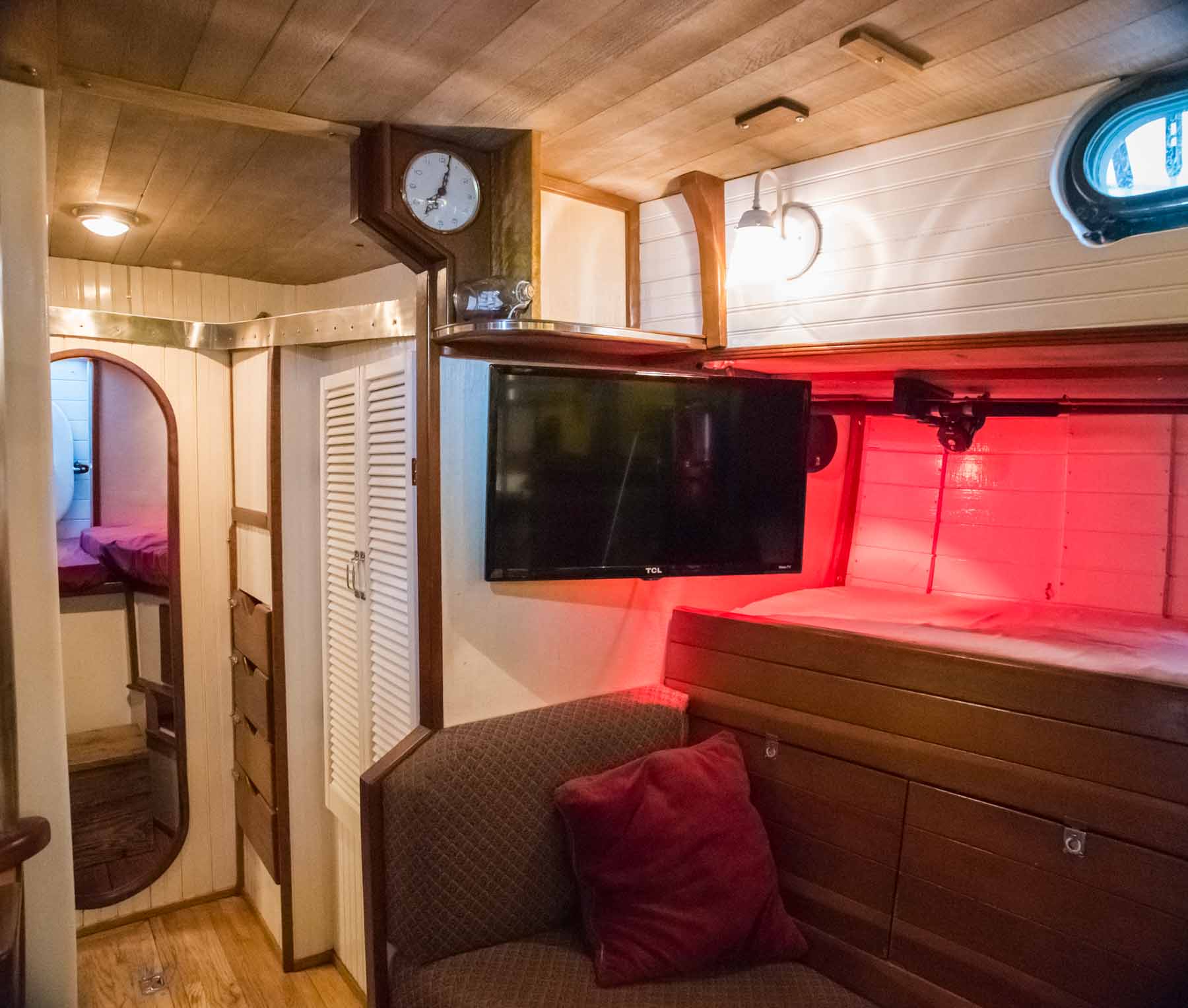 2015 reconfigured stateroom layouts to accommodate a crew of 5. Upgraded all lighting to LED, re-wallpapered salon,
