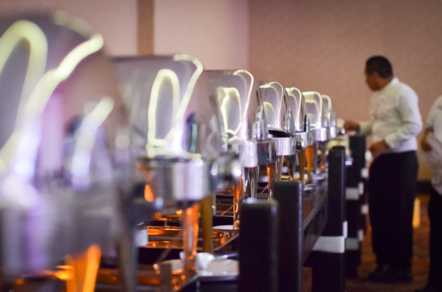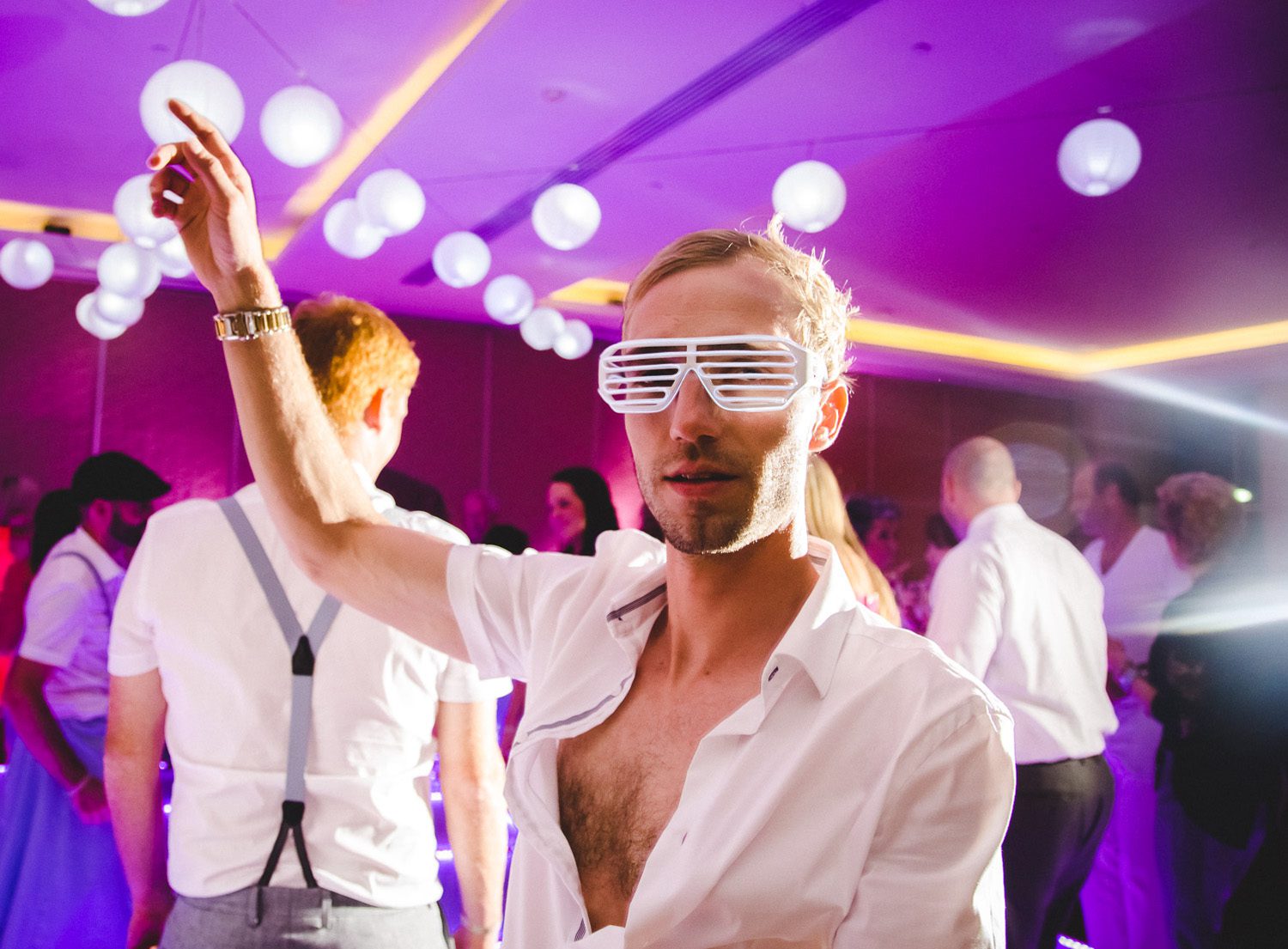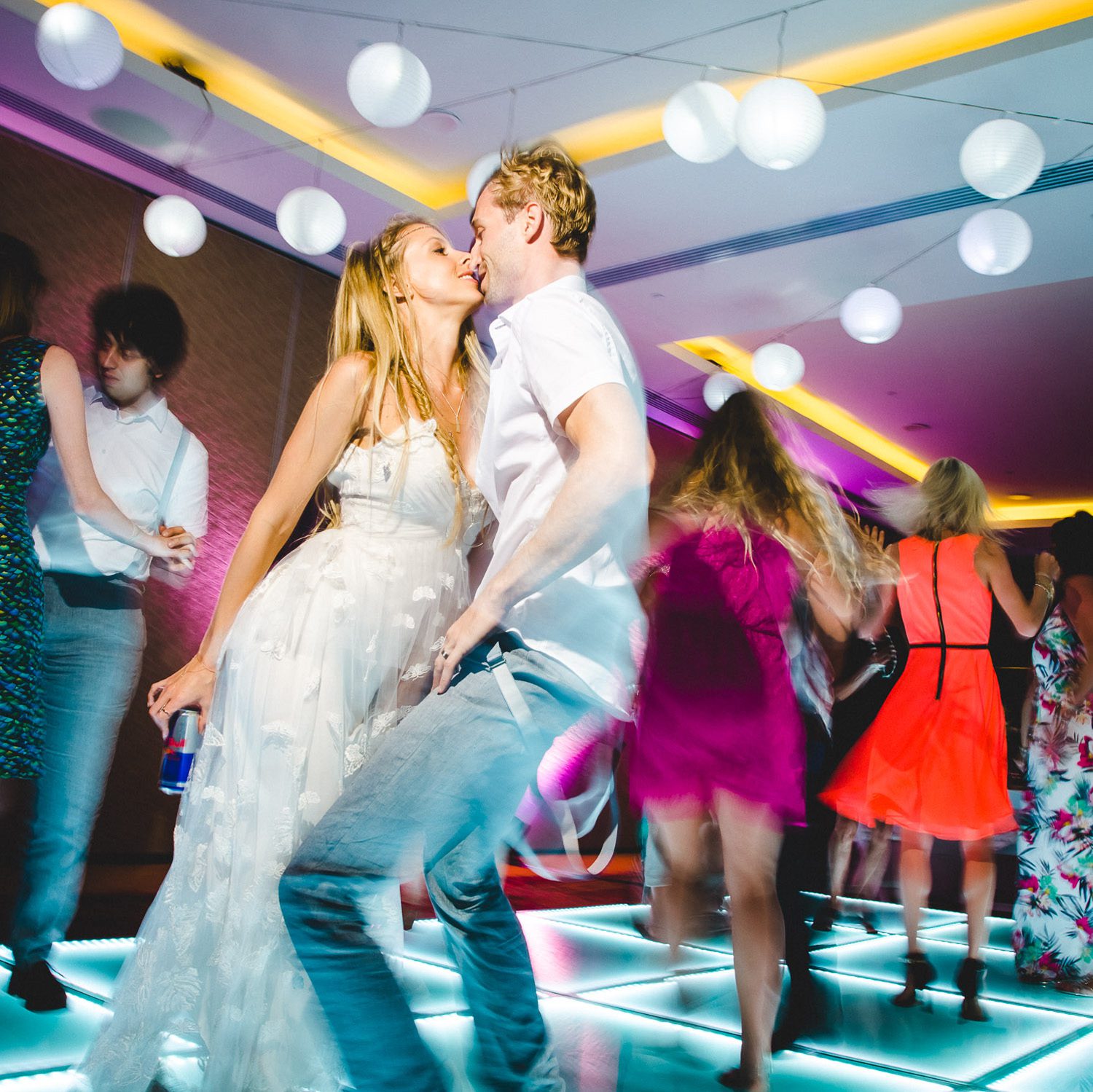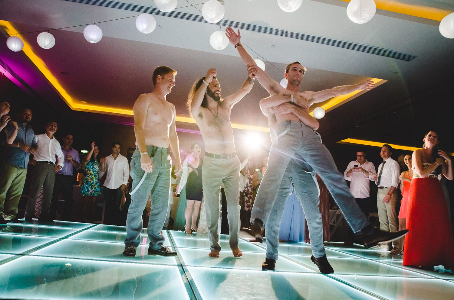 The incredible (and hard to color correct) constant color changing dance floor of the reception.