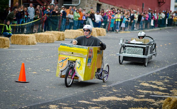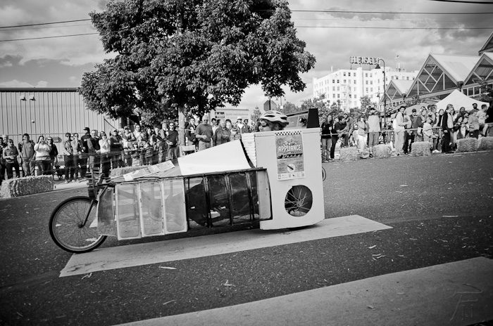 THEN, we clear the streets for the 4th Annual Appliance Art Revival & Derby, sponsored by the non-profit Appliance Depot. This was a great coming together of clever handyworks by some of the handiest people in town. Everyone played nicely together, the racing was clean for the most part. Only a few straw bales got injured.