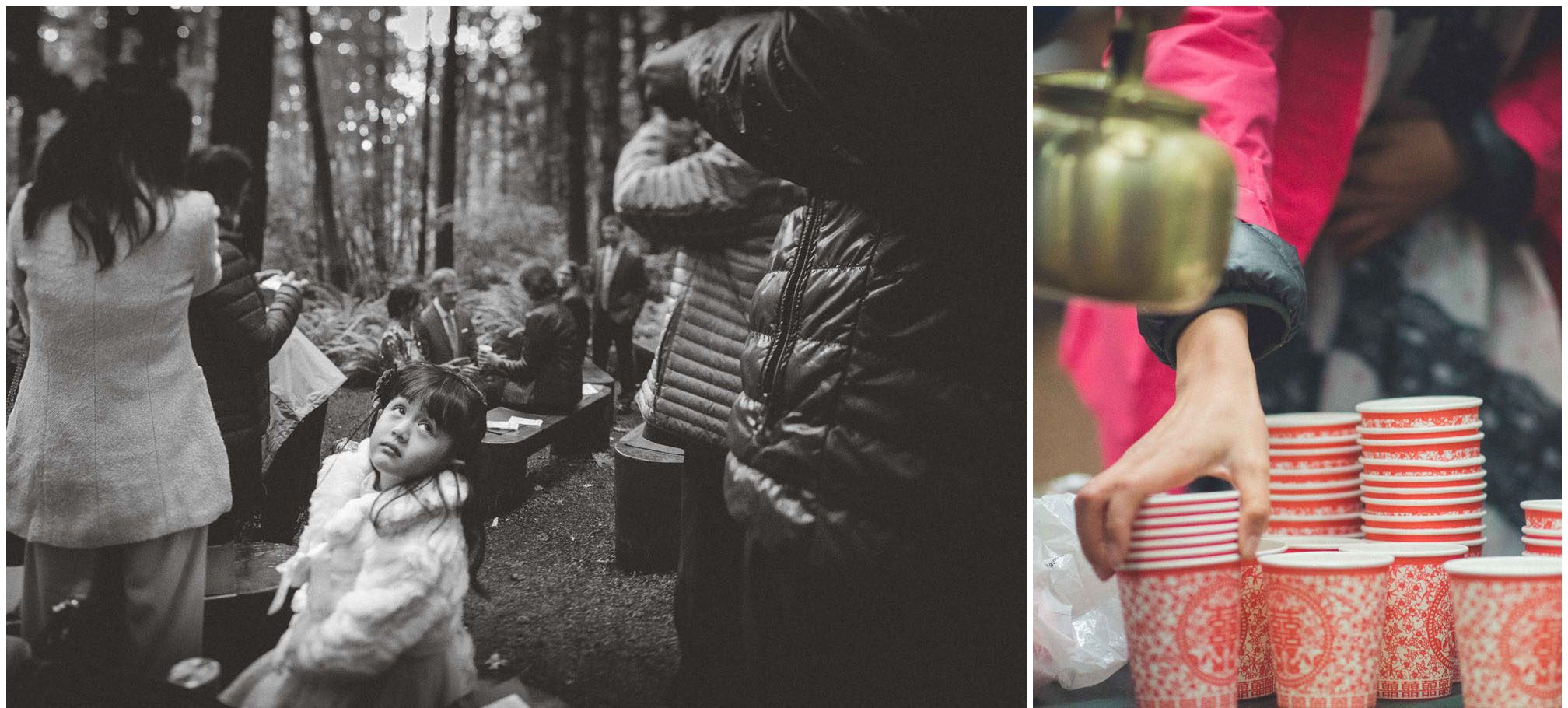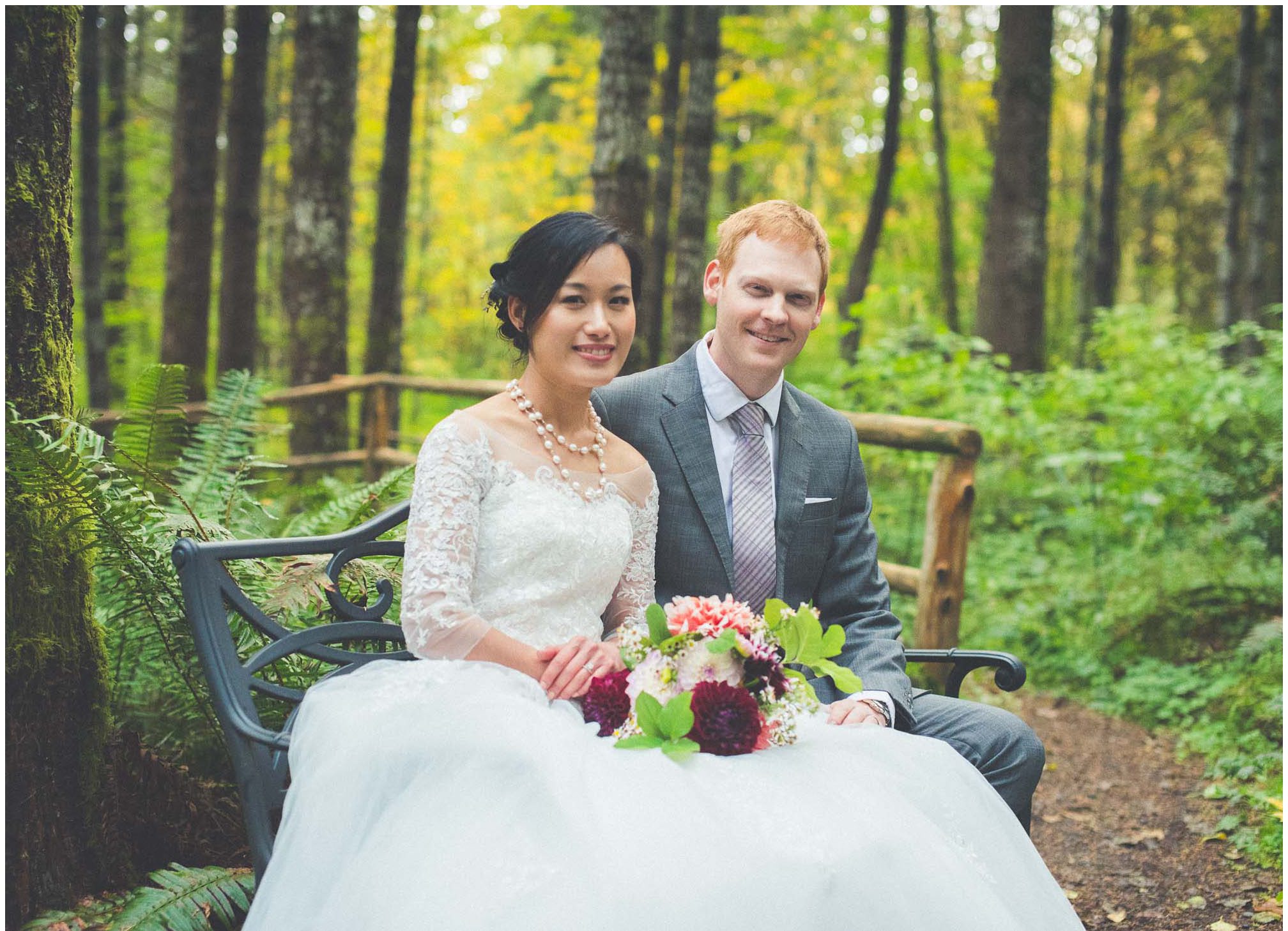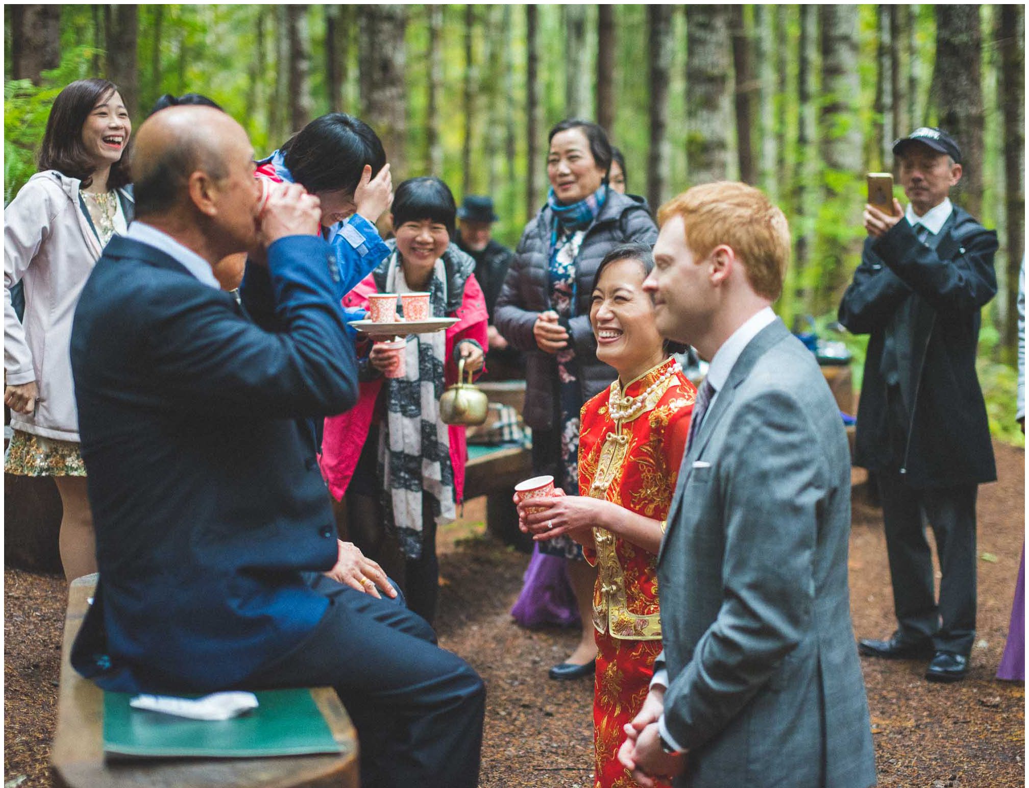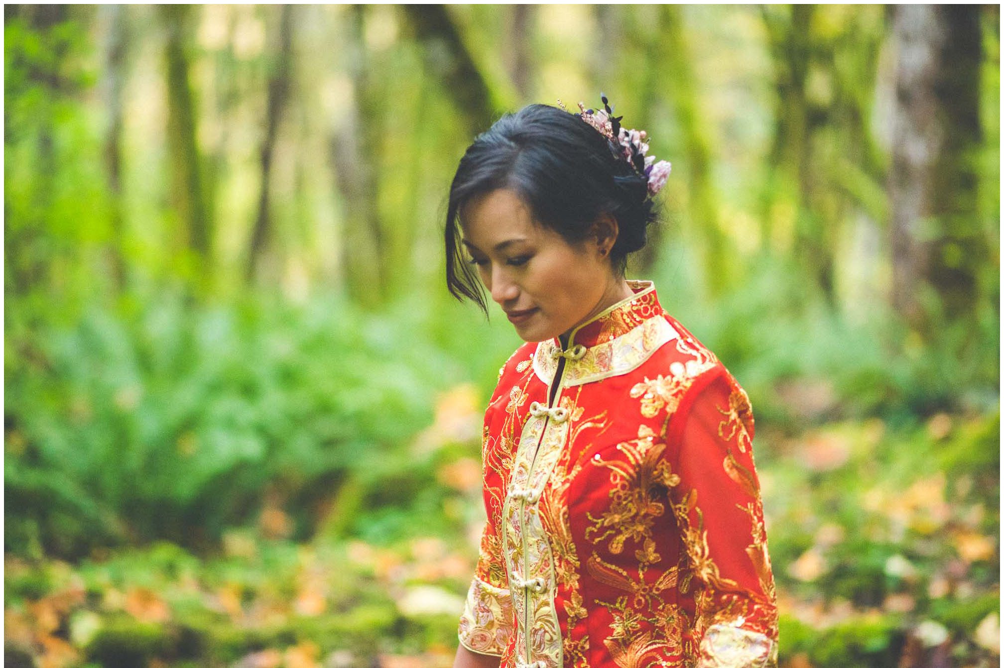 On a chilly October day on the flanks of Mt. Rainier, a beautiful event was taking place deep in the woods. CB and PM made a lifelong promise among a loving group of friends and family. The wedding ceremony was preceded by a traditional Chinese tea ceremony to honor all the elders who have helped bring them this far. After a great feast provided by Ramblin Jacks, the day turned into night as the laughs accompanied fun dancing and photobooth shenanigans. It was a long anticipated day after getting to know them a few months prior for the engagement session. The Wellspring Spa and Retreat can accommodate over 100 guests throughout its 10 acre sanctuary including use of its cedar hot tubs and saunas. What a dreamy private venue for Pacific Northwest wedding!