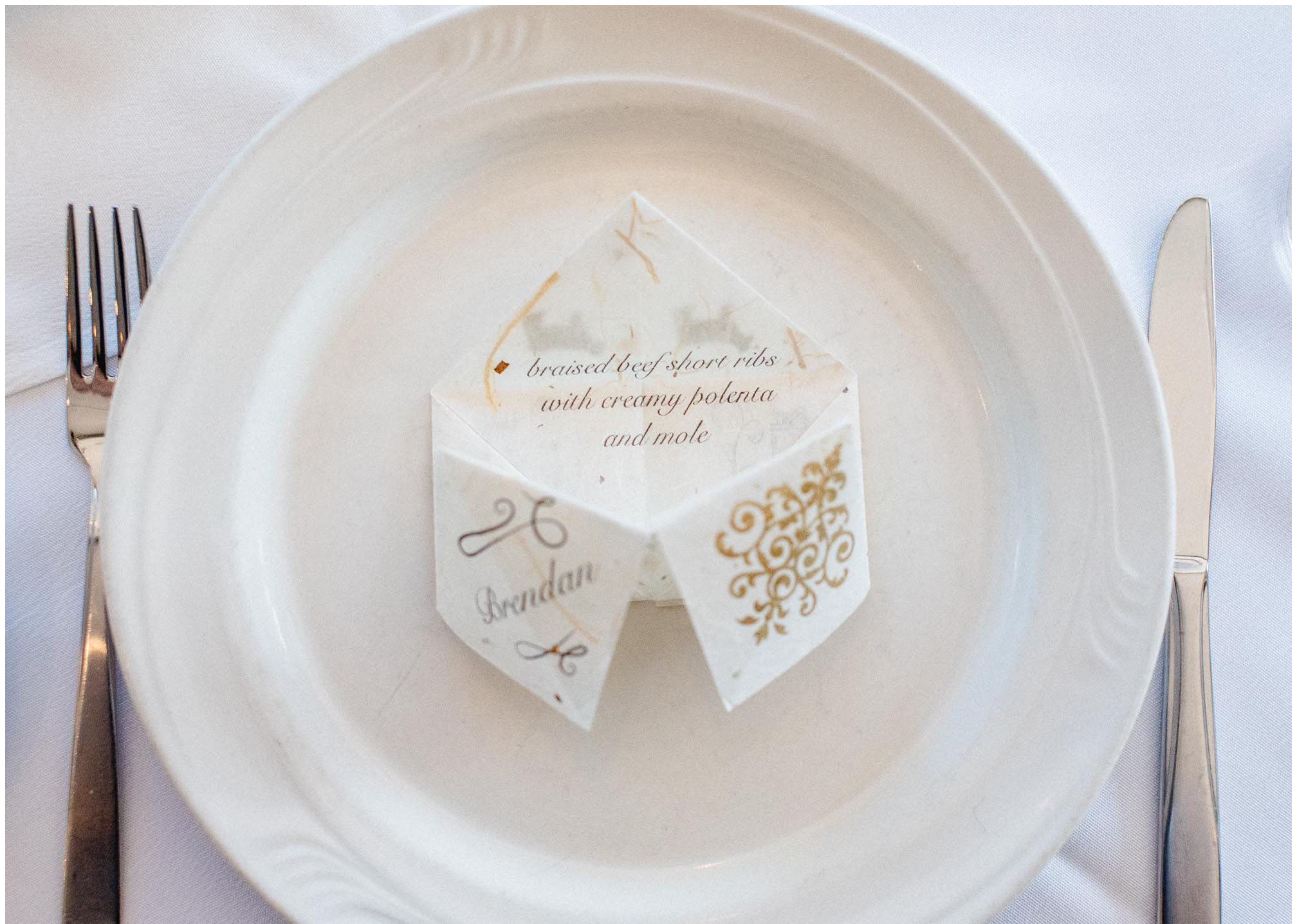 For me, I loved the little touches that were considered in the planning: the violinist at the ceremony, the paper design of the dinner menu, and the flower arrangements. Take your time to drink in all the many details on this one. Shout out to Cloud 9 Events for pulling it all together in a flawless fashion!
