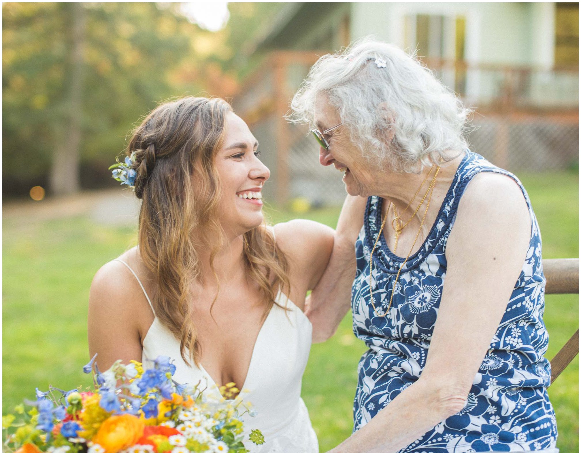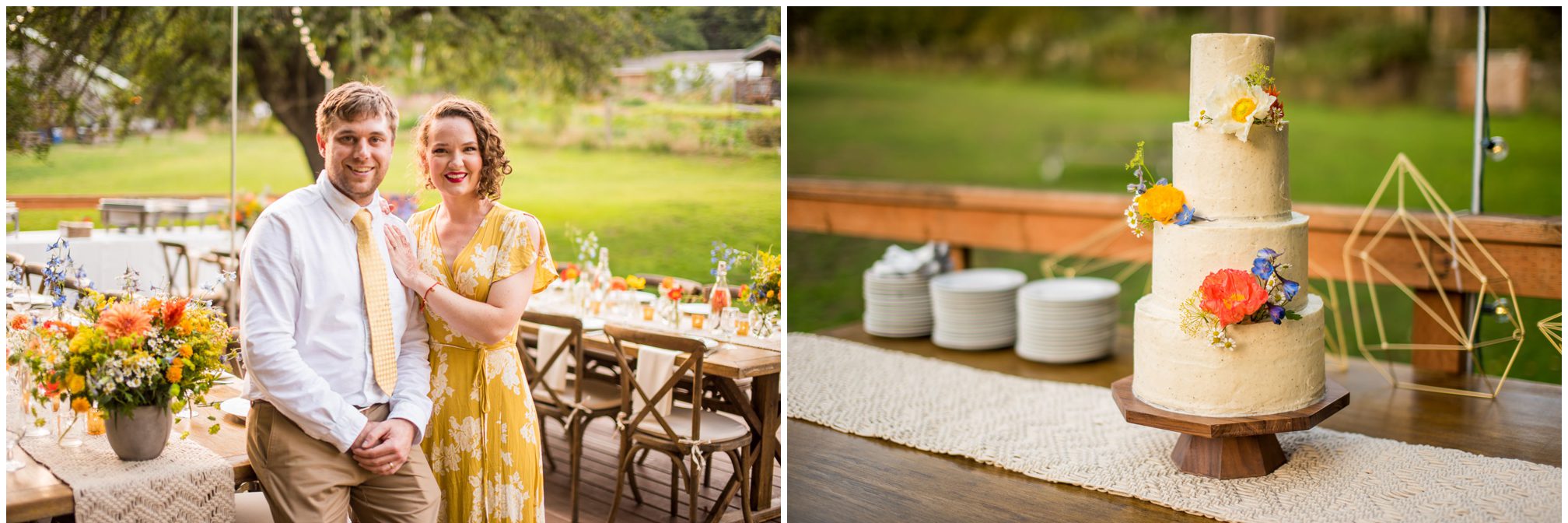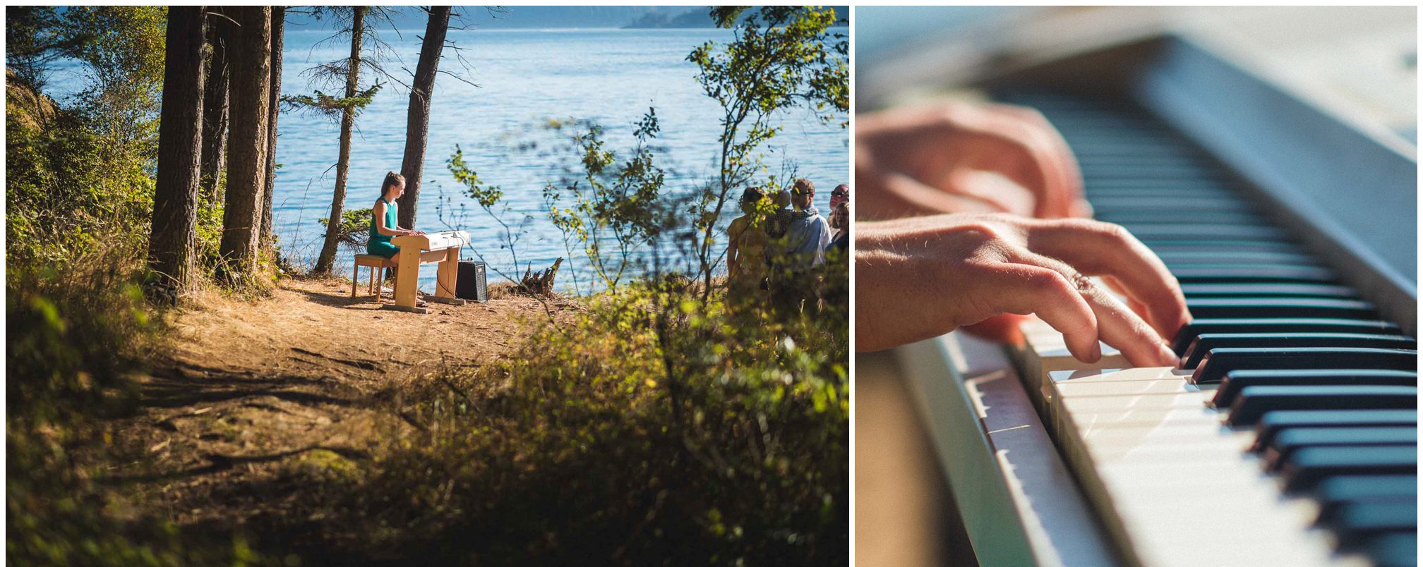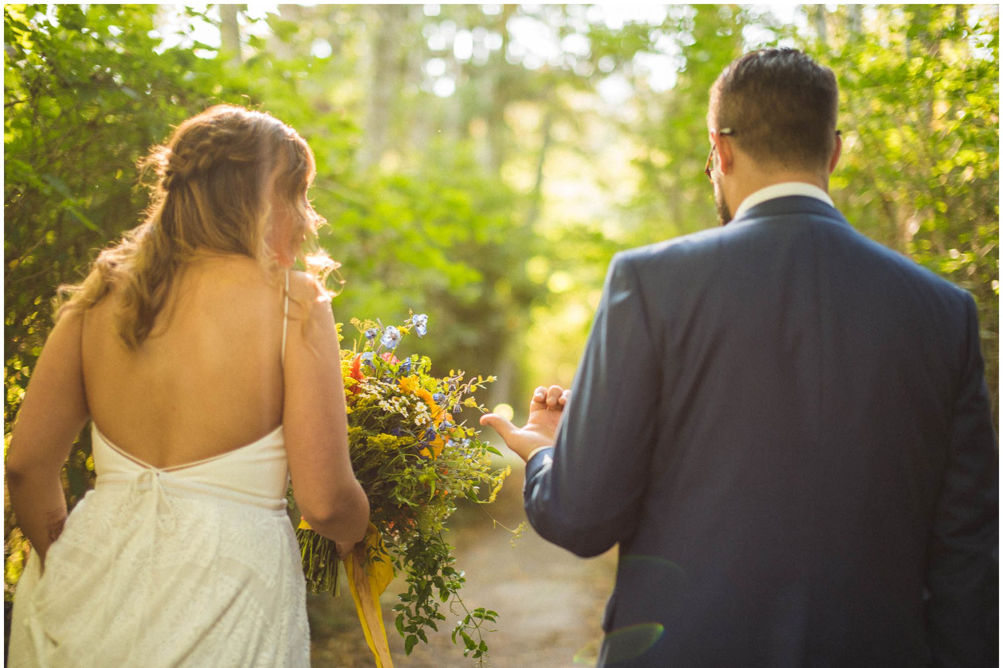 What amazes me most looking back on our wedding is how, even though we made a 3-night weekend trip out of it, it absolutely flew by. It was a whirlwind of the very best kind. I’ll always remember the raucous glee of the guests the night before the wedding, as some of our dearest friends and family met one another for the first time, and I assembled our wedding cake while everyone heckled me like I was on a cooking show and stole cake scraps. I’ll remember how much trouble I had falling asleep that night because I was so worried about all of the details I was forgetting, Jesse doing everything he could to soothe me to sleep, and then then incredible calm and sense of total happiness that came over me when I put on my dress and realized I was GETTING MARRIED to a person I love deeply, and the details weren’t that important. I’ll think back with amazement and gratitude about the different ways our friends and family pitched in cheerfully to make the whole thing happen — people setting tables, stringing lights, assembling the incredible wedding arch that my dad made, shredding pork with their hands, putting out snacks. My brother and sister-in-law/BFF Josh and Molly accomplishing a superhuman amount of work and never complaining once. I’ll remember how beautifully our friend Gigi played the piano as Jesse and I walked together to the ceremony spot, and how my sister Emily’s reading of the poem “For What Binds Us” by Jane Hirshfield moved me and felt so true to the love Jesse and I were celebrating. I’ll remember the sincerity of our vows and wiping tears from Jesse’s cheeks with the handkerchief I hid in my bouquet. The next day, a big group of us kayaked along the north shore of Orcas and it was exhilarating — the weather cooperated and the water wasn’t too choppy, and we saw harbor seals and birds and breathed the salt air. It was all over way too soon, and I remember crying happy and sad tears as we took one last look at the water from our ceremony spot before we caught a ferry home. For me, it was a weekend of pure magic. – Kiley