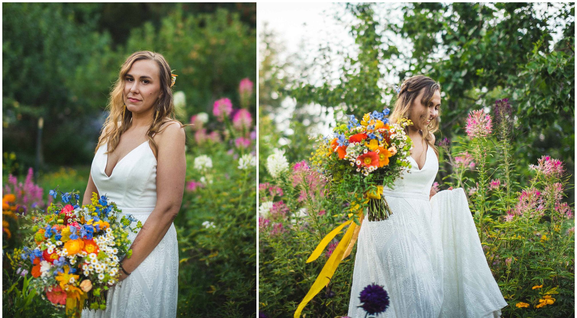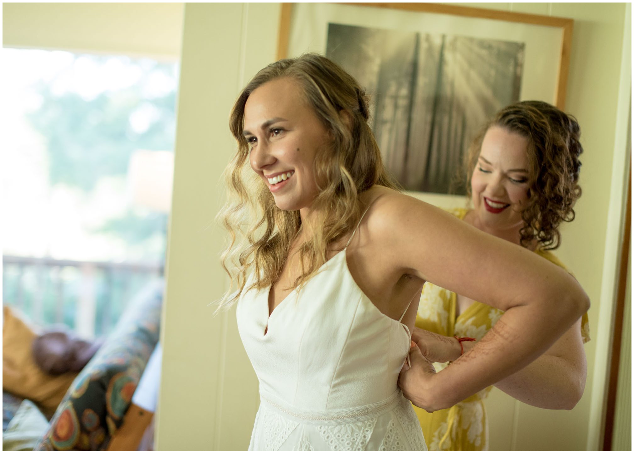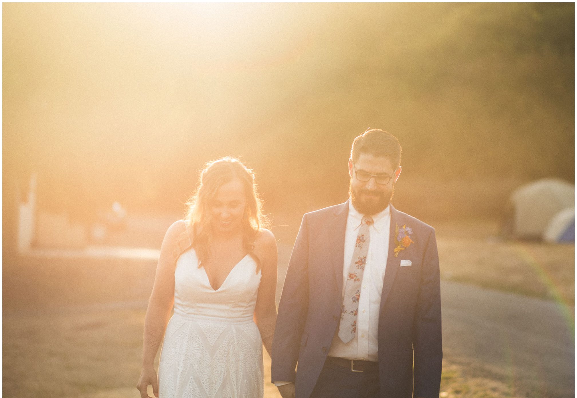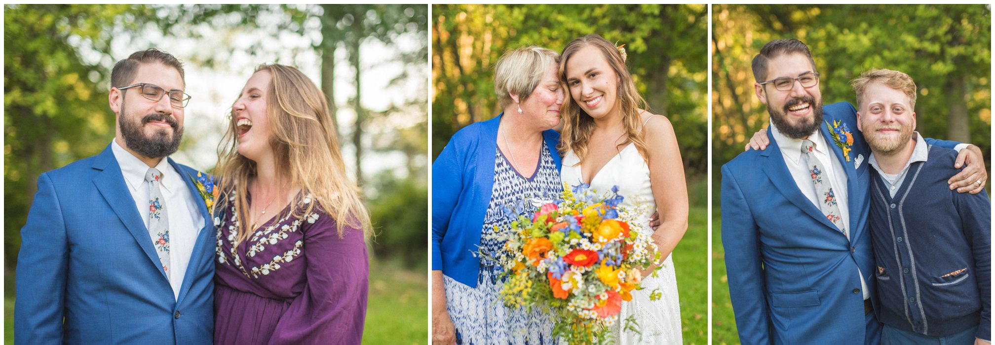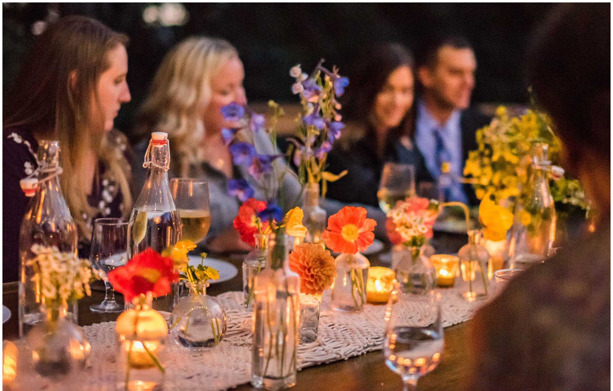 What amazes me most looking back on our wedding is how, even though we made a 3-night weekend trip out of it, it absolutely flew by. It was a whirlwind of the very best kind. I’ll always remember the raucous glee of the guests the night before the wedding, as some of our dearest friends and family met one another for the first time, and I assembled our wedding cake while everyone heckled me like I was on a cooking show and stole cake scraps. I’ll remember how much trouble I had falling asleep that night because I was so worried about all of the details I was forgetting, Jesse doing everything he could to soothe me to sleep, and then then incredible calm and sense of total happiness that came over me when I put on my dress and realized I was GETTING MARRIED to a person I love deeply, and the details weren’t that important. I’ll think back with amazement and gratitude about the different ways our friends and family pitched in cheerfully to make the whole thing happen — people setting tables, stringing lights, assembling the incredible wedding arch that my dad made, shredding pork with their hands, putting out snacks. My brother and sister-in-law/BFF Josh and Molly accomplishing a superhuman amount of work and never complaining once. I’ll remember how beautifully our friend Gigi played the piano as Jesse and I walked together to the ceremony spot, and how my sister Emily’s reading of the poem “For What Binds Us” by Jane Hirshfield moved me and felt so true to the love Jesse and I were celebrating. I’ll remember the sincerity of our vows and wiping tears from Jesse’s cheeks with the handkerchief I hid in my bouquet. The next day, a big group of us kayaked along the north shore of Orcas and it was exhilarating — the weather cooperated and the water wasn’t too choppy, and we saw harbor seals and birds and breathed the salt air. It was all over way too soon, and I remember crying happy and sad tears as we took one last look at the water from our ceremony spot before we caught a ferry home. For me, it was a weekend of pure magic. – Kiley